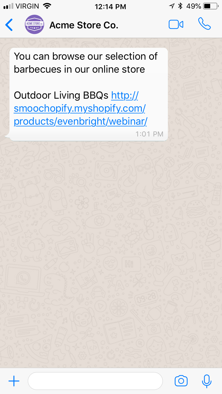 For more information on formatting a deep link, see the “using click to chat” documentation.