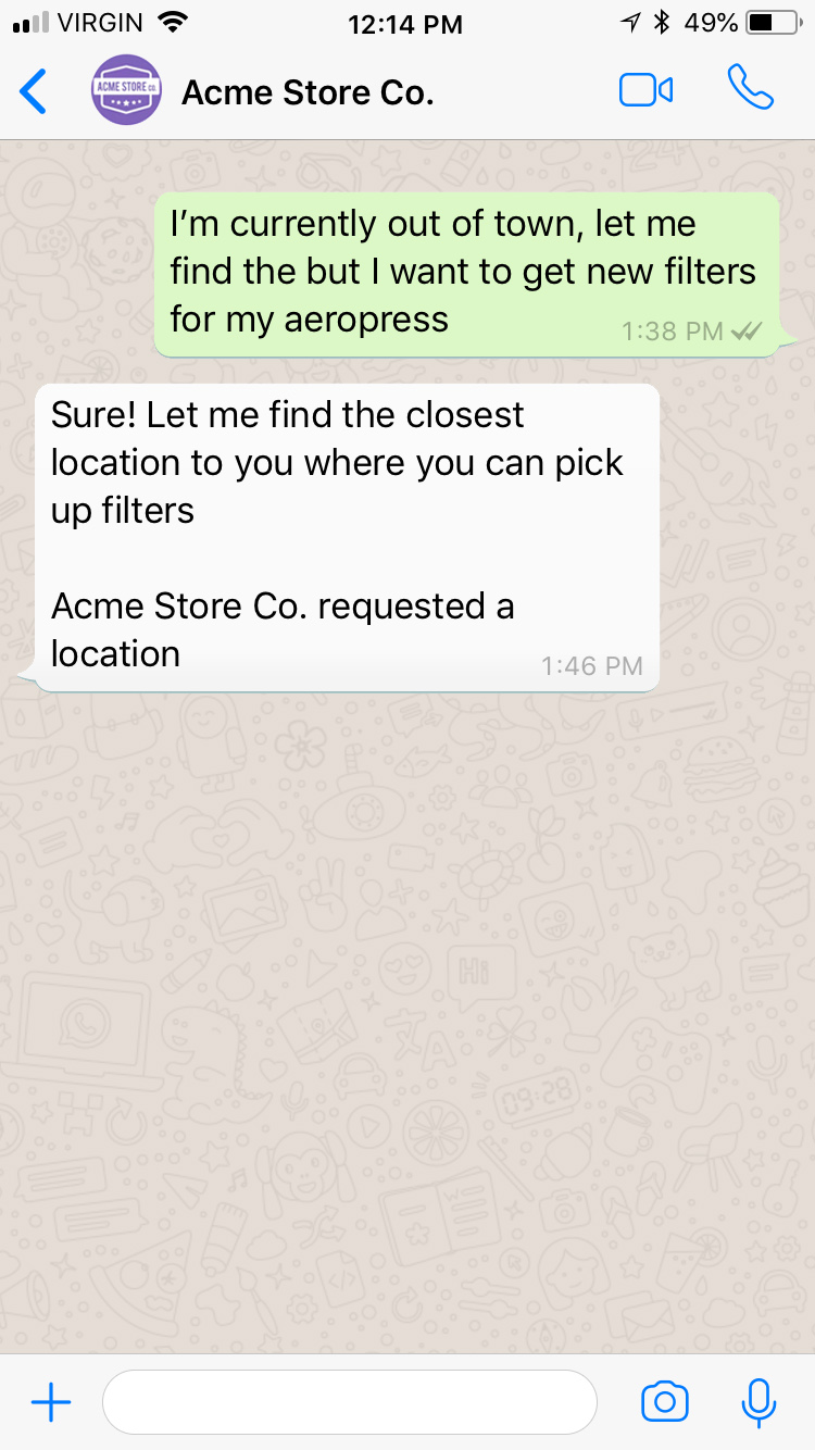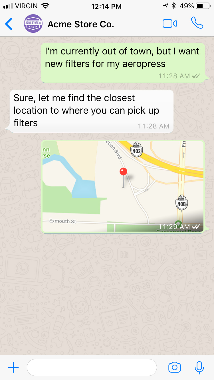 Users can start a conversation with a business in two ways