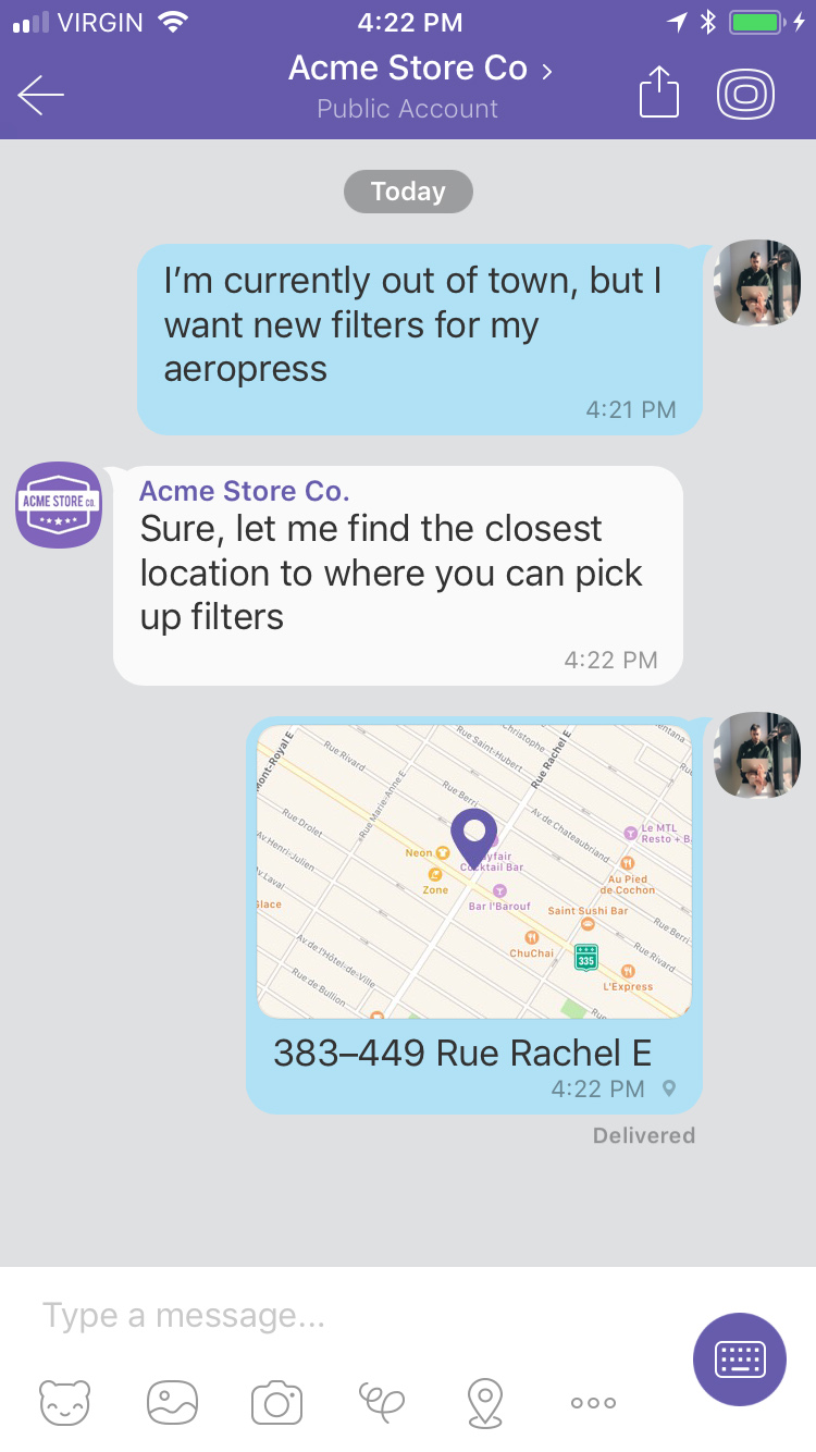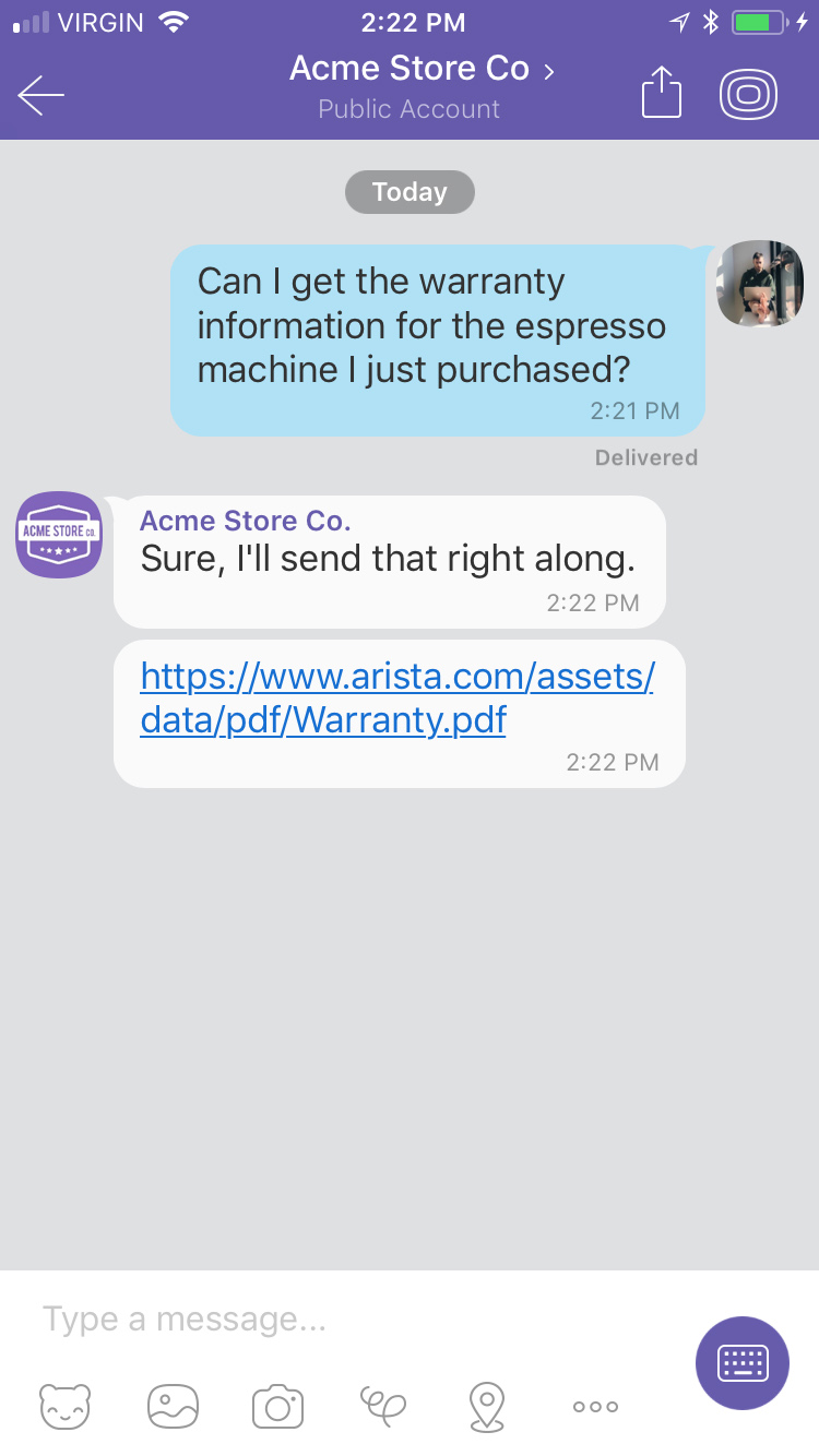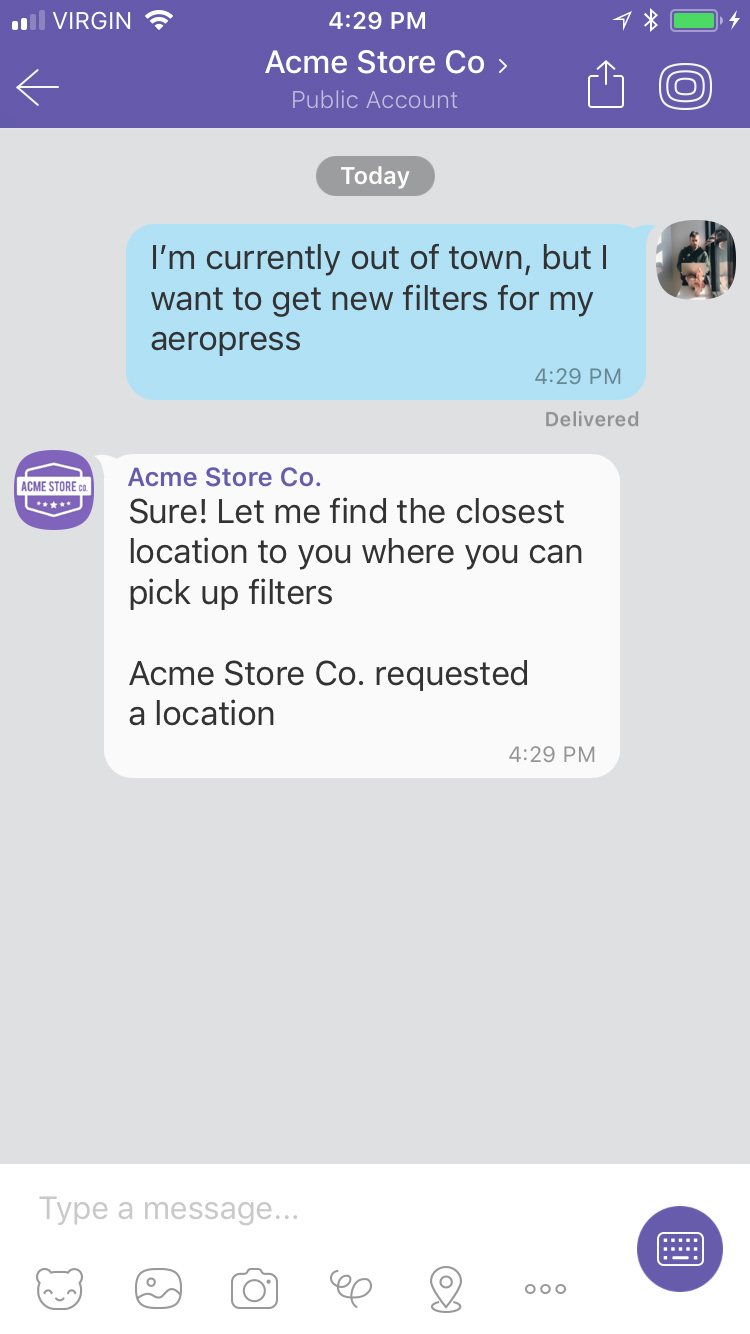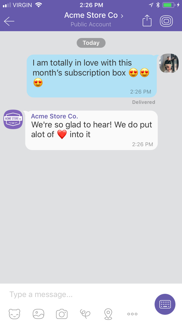 Delivery events allow you to track deliveries of Sunshine Conversations messages to Viber by subscribing to the conversation:message:delivery:channel webhook. Failures to deliver a message to Viber can be detected by subscribing to the conversation:message:delivery:failure webhook.