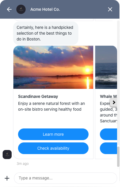 Carousels are rendered natively with full functionality in the Web Messenger. See our API documentation for instructions on how to send one.