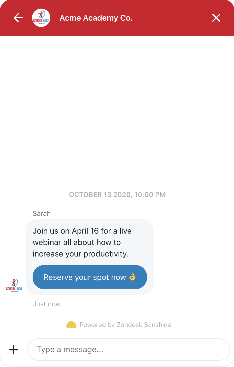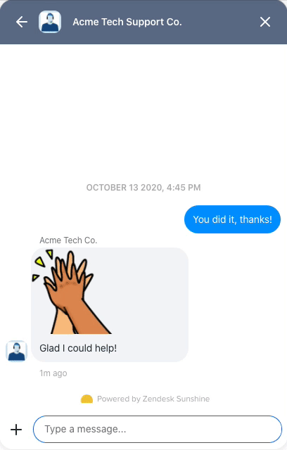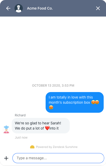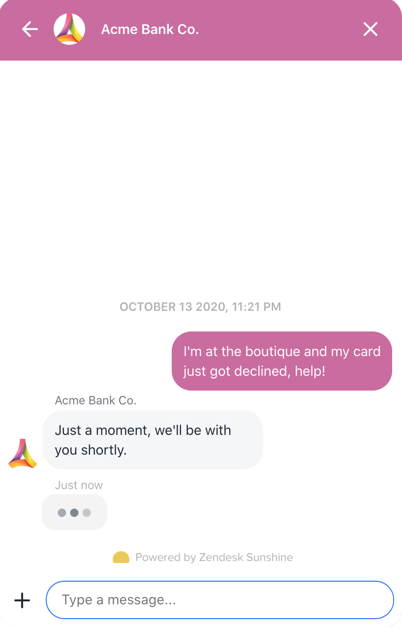The Sunshine Conversations Web Messenger is a highly customizable messaging widget that can be added to any web page. Web Messenger is unique in that it allows the user seamlessly move the conversation beyond the browser to a persistent channel like SMS, Facebook Messenger, or any other OTT channels.