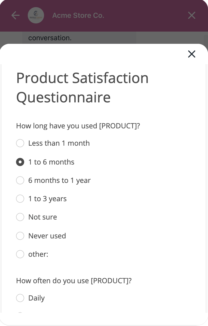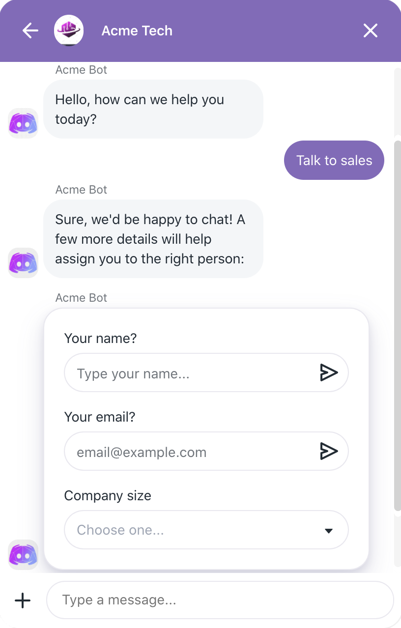 Form messages are rendered natively with full functionality in the Web Messenger and are a great way for you to capture user data.