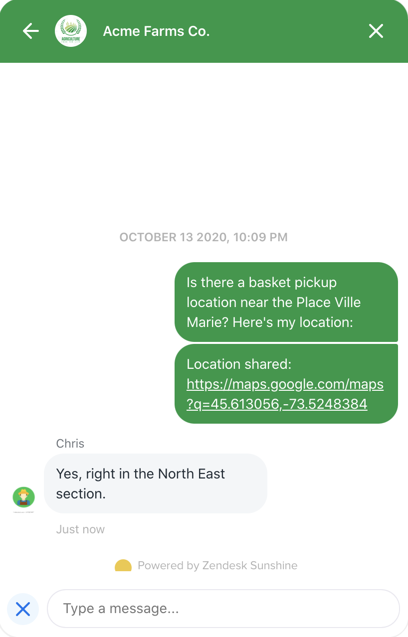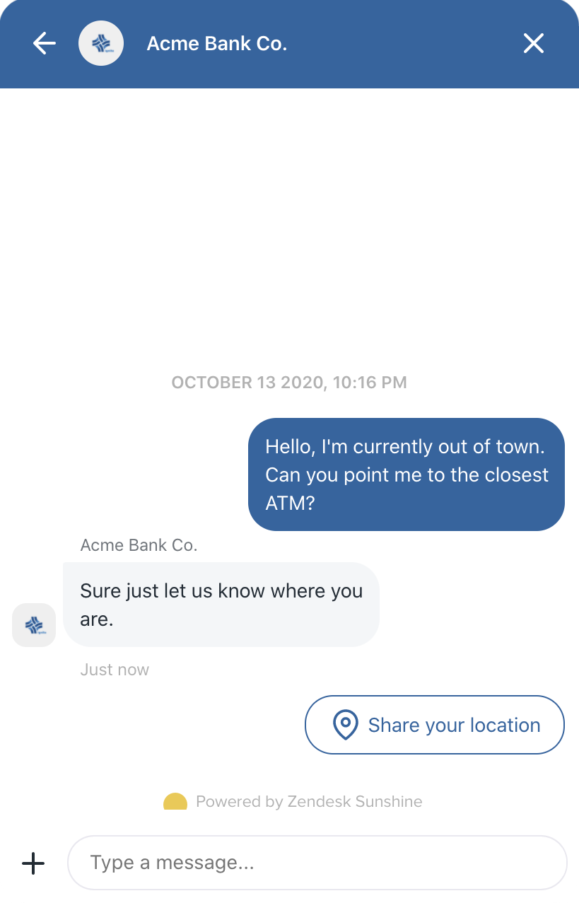 Users can send location messages as a response to a Location Request, or by using the Share Location button.