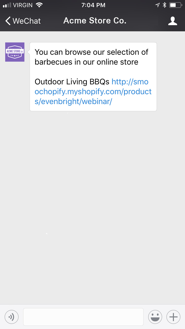 Delivery events allow you to track deliveries of Sunshine Conversations messages to WeChat by subscribing to the conversation:message:delivery:channel webhook. Failures to deliver a message to WeChat can be detected by subscribing to the conversation:message:delivery:failure webhook.